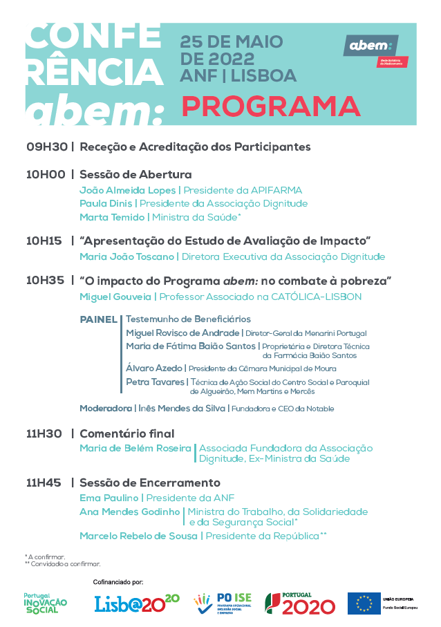 A iniciativa pretende criar um momento de reflexão sobre o acesso da população portuguesa mais carenciada à saúde e aos medicamentos e, ainda, avaliar o impacto do Programa abem: no combate à pobreza.