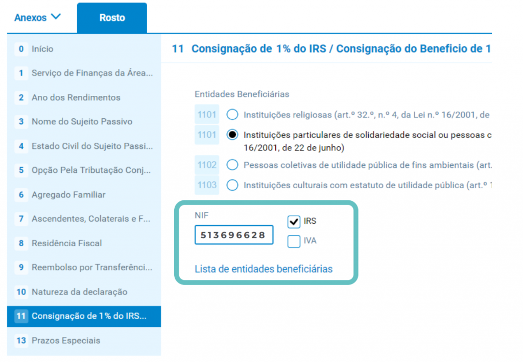 2. Se submeter a Declaração Anual de Rendimentos Tradicional (Modelo 3), preencha o Quadro 11 do anexo “Rosto”, selecionando o Campo 1101.